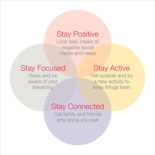 Find a healthy balance of staying informed while limiting daily intake of social media and news updates. Flooding your brain will only keep the adrenaline in overdrive.