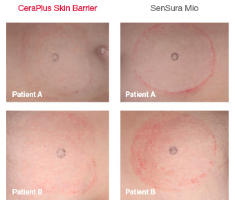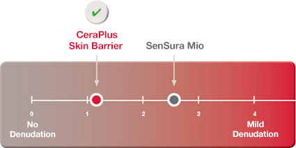 CeraPlus skin barrier is significantly less disruptive to the skin compared to SenSura Mio skin barrier.1