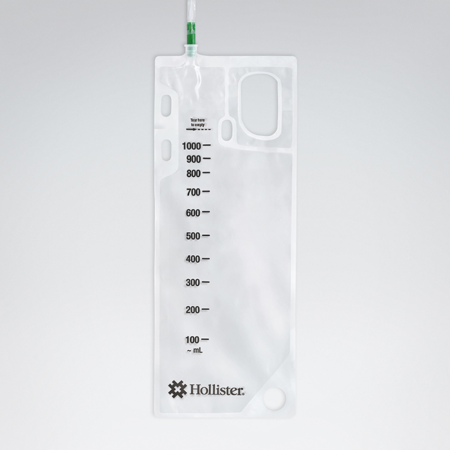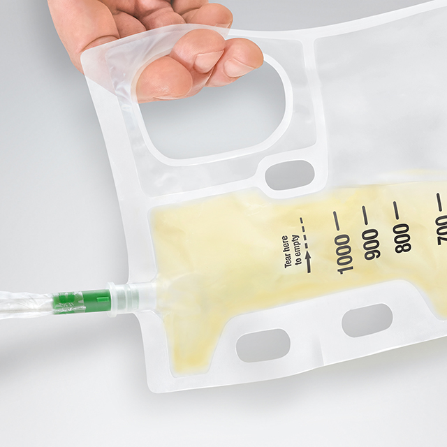 The collection bag is easy-to-open and easy-to-empty, and includes a non-return valve to prevent backflow of urine.
