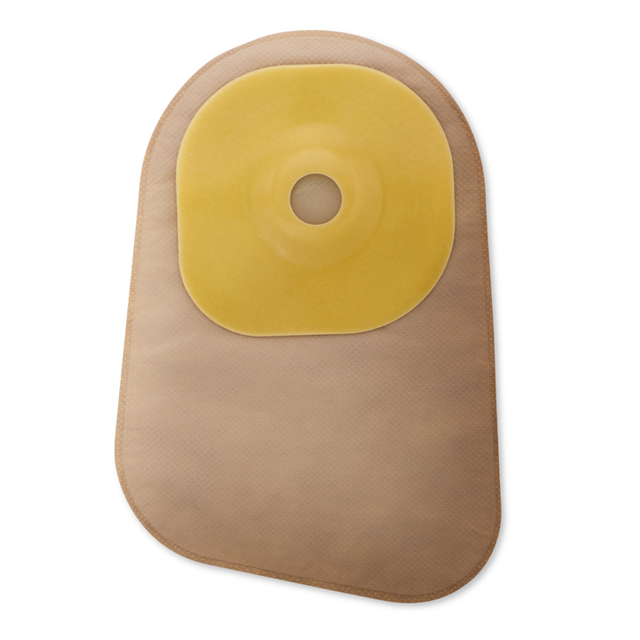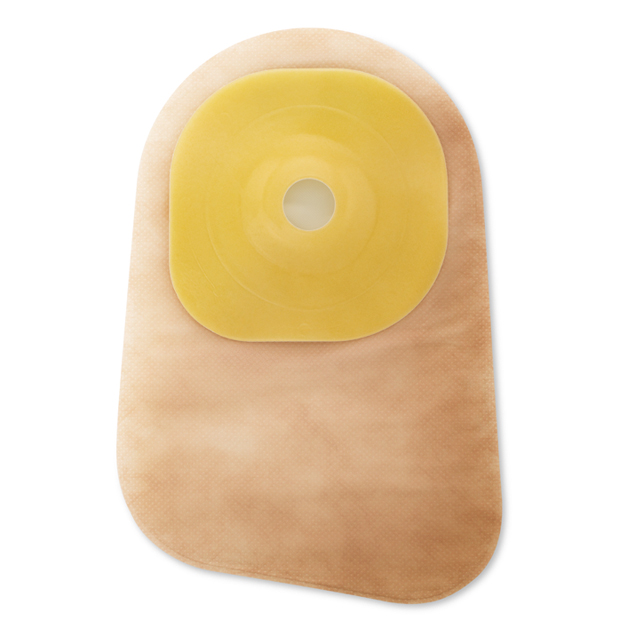 A one-piece, closed pouching system designed to be removed after use. These pouches are most suitable for colostomies or for stomas with less frequent or more predictable output. The SoftFlex™ barrier is a standard wear skin barrier that is gentle to the skin and allows for frequent pouch removal. The AF300™ filter allows for slow release and deodourisation of gas from the pouch. Soft, beige ComfortWear™ pouch panels help provide comfort.