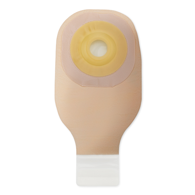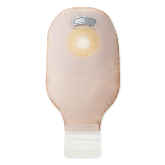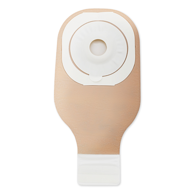 A one-piece, drainable pouching system designed to be opened at the bottom when emptying. These pouches are most suitable for colostomies or ileostomies. The FlexWear™ barrier provides excellent adhesion to the skin and designed to be worn for more than one day. The Lock ’n Roll™ closure utilises plastic interlocking fasteners to create a secure closure at the bottom of the pouch. The AF300™ filter allows for slow release and deodourisation of gas from the pouch. Soft, beige ComfortWear™ pouch panels help provide comfort.