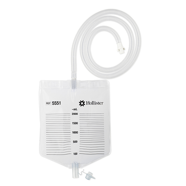 Easy-to-use collection bag connects directly to the Hollister High Output pouches without the need for connectors. Holds 2000 ml and has punch holes for nightstand attachment.